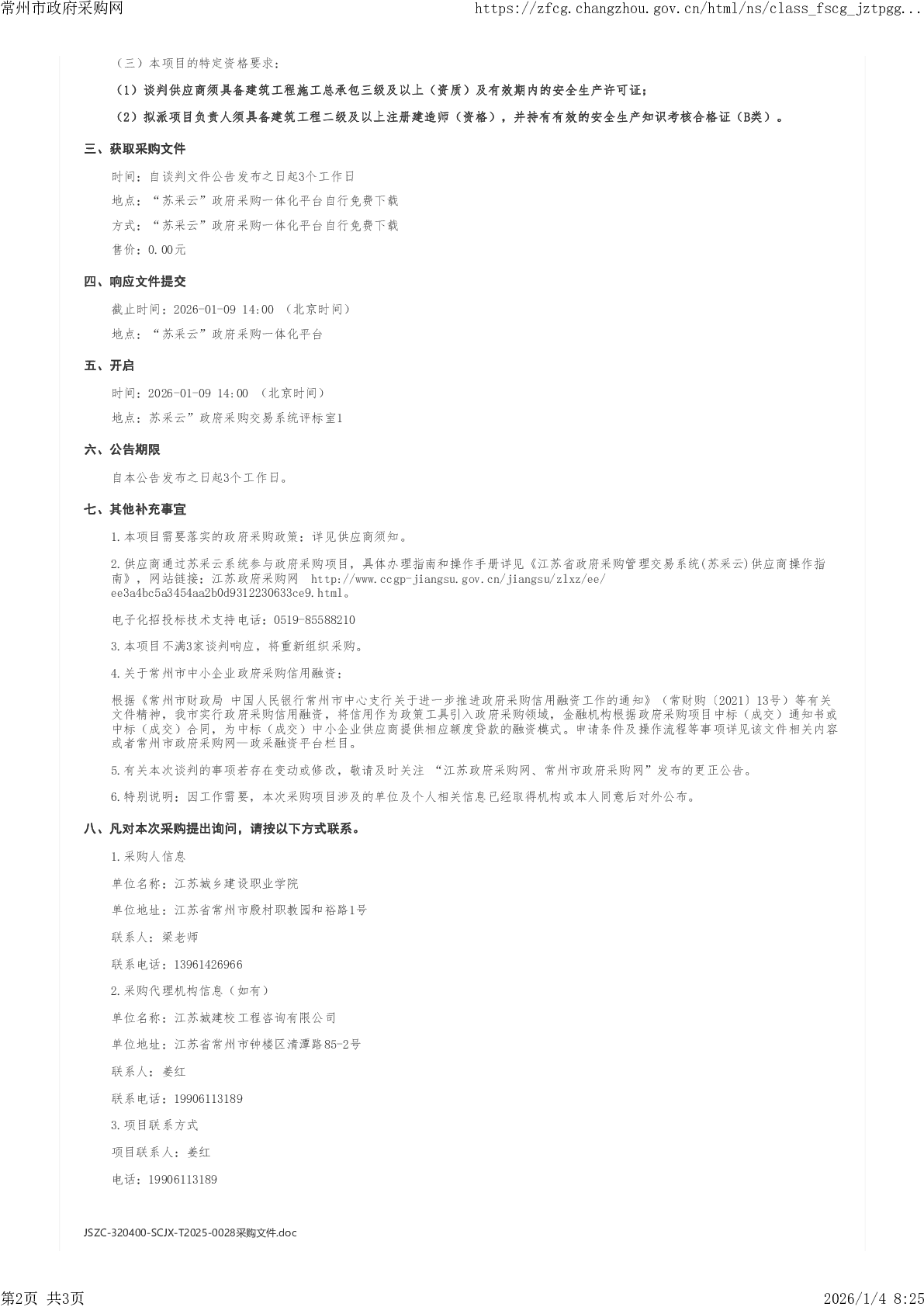 江苏城乡建设职业学院2026年度零星修缮工程采购公告