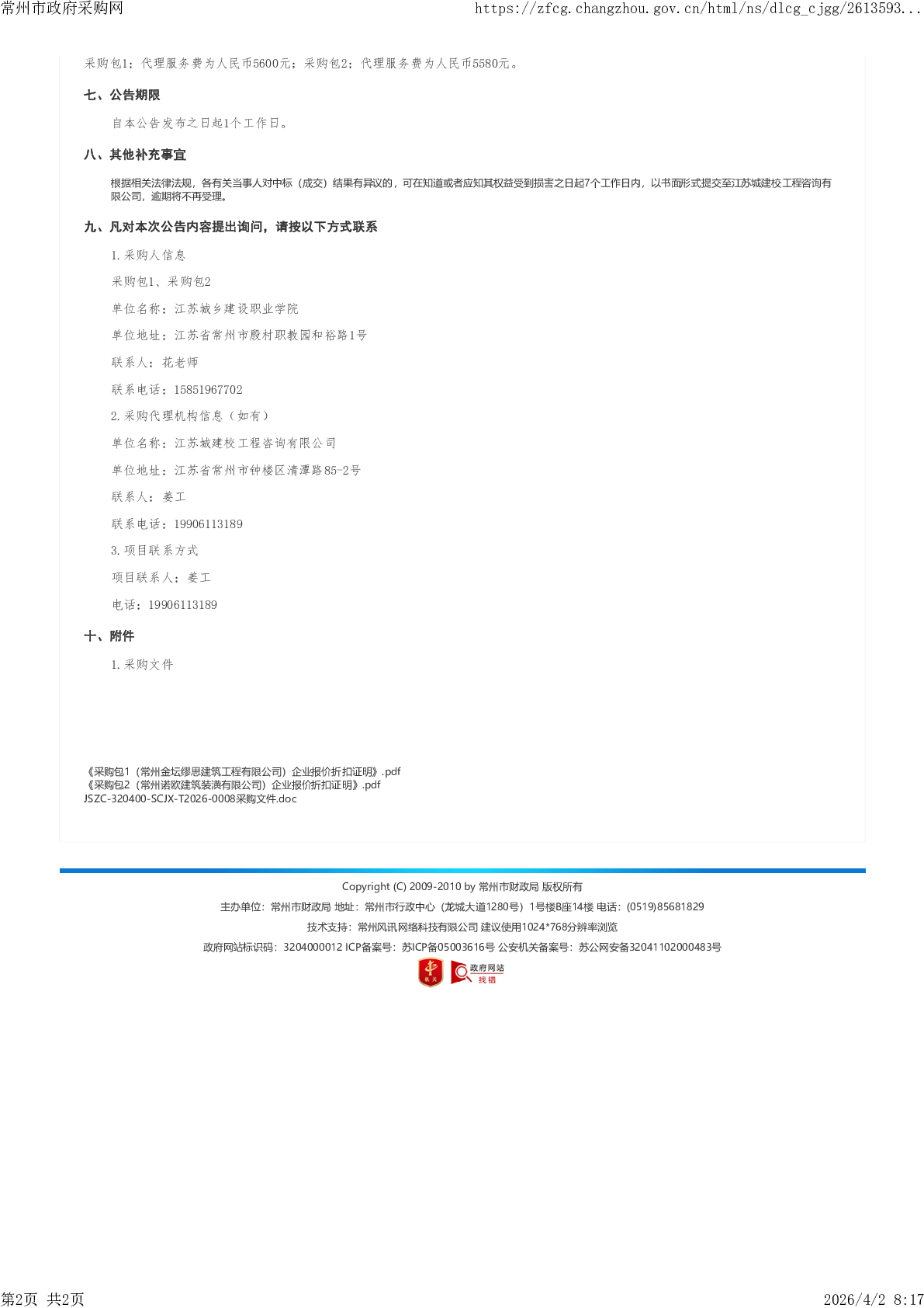 江苏城乡建设职业学院2026年度实验实训及技能竞赛用材料及低值易耗品采购成交更正公告